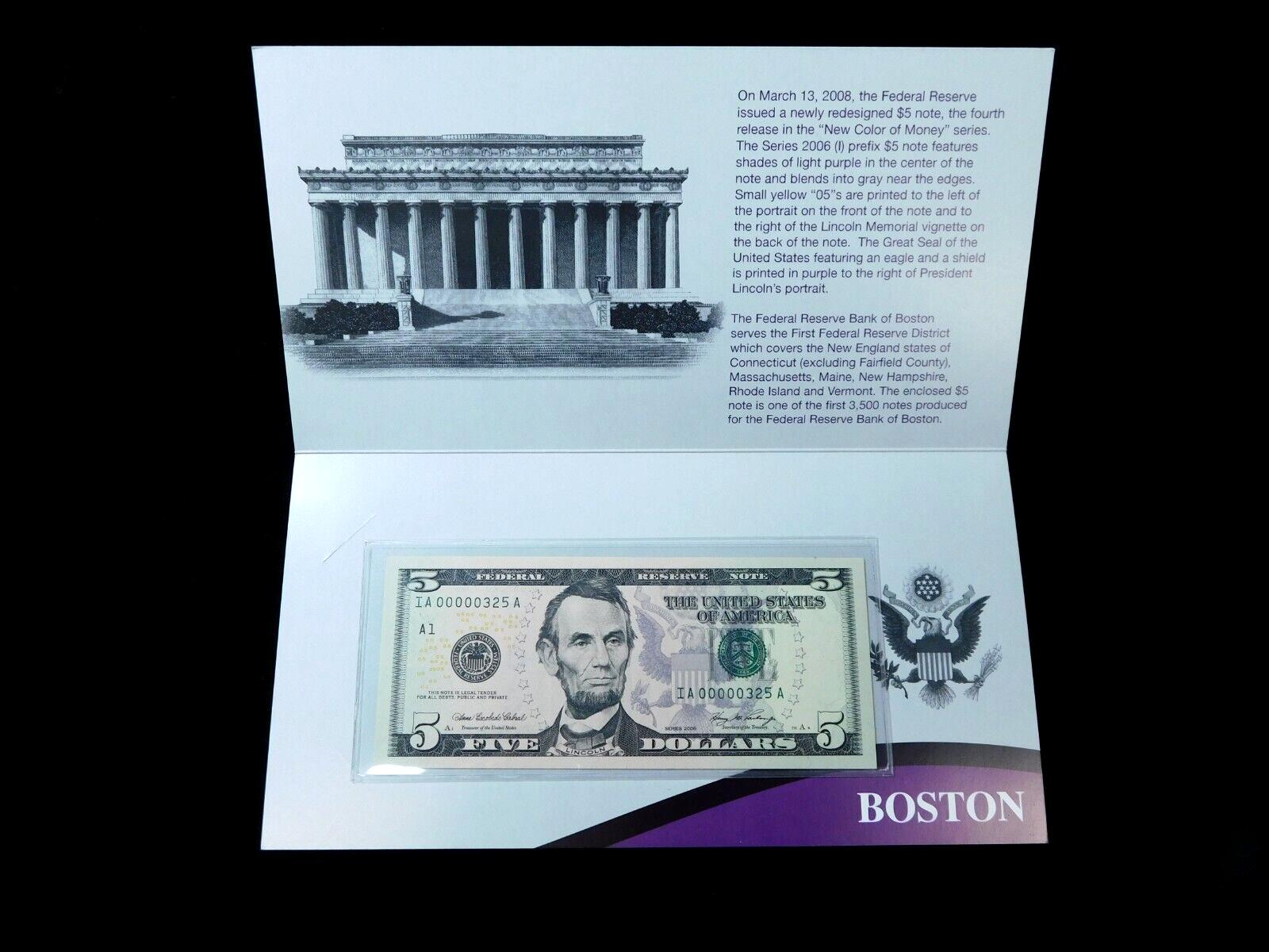 BEP 2006 $5 "New Color of Money" Boston
