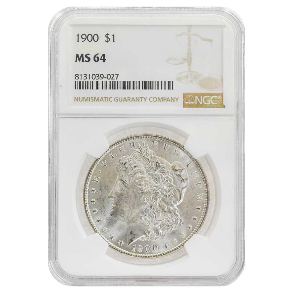 The 1900 Morgan Dollar graded MS64 by NGC showcases strong cartwheel luster and a sharp strike, typical of Philadelphia Mint production. With minimal marks and attractive surfaces, it sits just below Gem quality, offering excellent visual appeal for the grade. This well-preserved example represents a classic piece of late 19th-century American coinage, certified by a trusted grading service.