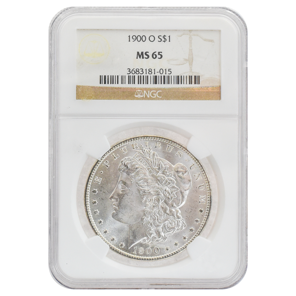 The 1900-O Morgan Dollar graded MS65 is a Gem-quality example, boasting vibrant luster, a sharp strike, and minimal contact marks. As a high-grade New Orleans Mint issue, it stands out for its eye appeal and well-preserved surfaces. This MS65 coin is a prized addition for collectors seeking a top-tier example of the classic Morgan Dollar series.